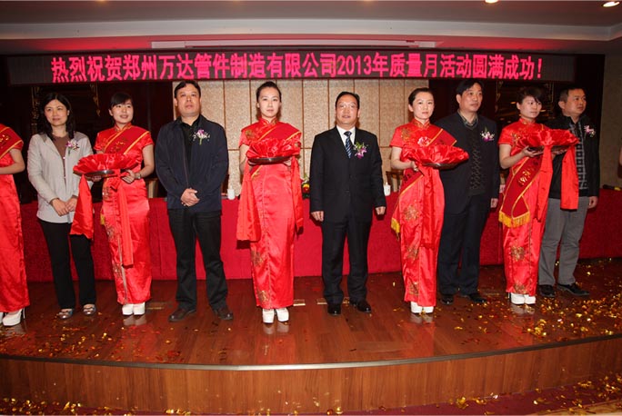 歌聲嘹亮、旗幟飄揚(yáng)、群情激昂,2013年4月3日上午九點,鄭州萬達(dá)管件制造有限公司隆重召開了“2013年公司質(zhì)量月活動宣誓大會”。鄭州市質(zhì)量技術(shù)監(jiān)督局尚副局長、肖處長、綜合保稅區(qū)(航空港區(qū))質(zhì)量技術(shù)監(jiān)督局王局長應(yīng)邀作為嘉賓出席了此次萬達(dá)質(zhì)量月啟動大會。
