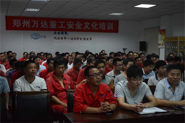 以人為本,打造幸福萬達,是萬達重工安全管理和安全文化建設的一個重要的原則。為提高員工安全意識,確保安全生產,鄭州萬達重工股份有限公司講師團昨日在公司會議室舉辦了 “安全文化建設宣貫培訓”。此次培訓由講師團執(zhí)行團長(工會主席)于江山授課,會場座無虛席。