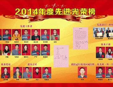 2016/01/28 245 2014年全年工作中,二十三位同志和兩個(gè)優(yōu)秀班組表現(xiàn)突出,踐行公司價(jià)值、實(shí)干、實(shí)效的工作理念,認(rèn)真工作,愛崗敬業(yè),始終保持旺盛的精神風(fēng)貌和飽滿的工作激情,在各自工作崗位樹立了榜樣,被評為公司的先進(jìn)代表。